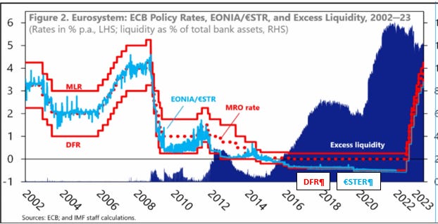 The overriding operational principle of the new framework is, in the words of the ECB, “The Governing Council will continue to steer the monetary policy stance through the DFR. Short-term money market interest rates are expected to evolve in the vicinity of the DFR with tolerance for some volatility as long as it does not blur the signal about the intended monetary policy stance.”