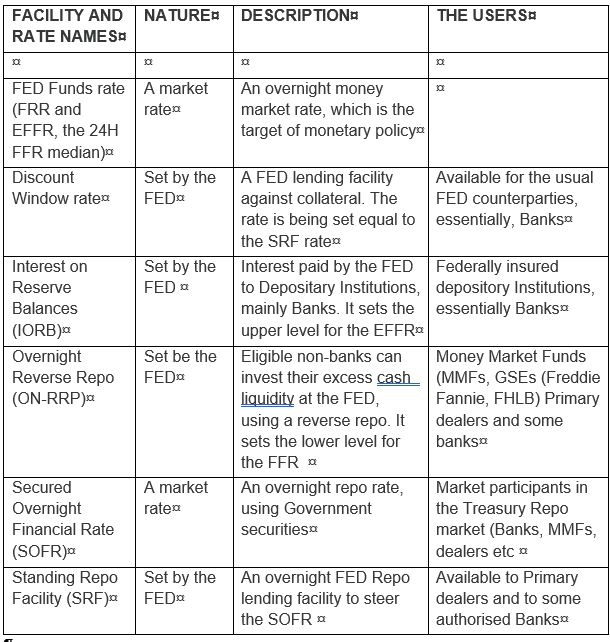 The following table concludes the post and summarises all the facilities and rates involved in the FED’s implementation of monetary policy.